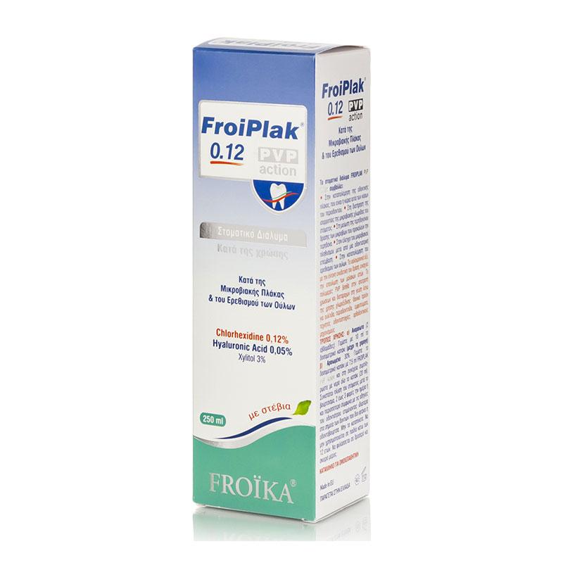 Το στοματικό διάλυμα Froiplak 0.12 PVP Action είναι ένα αντισηπτικό στοματικό διάλυμα που καταπολεμά την οδοντική πλάκα με άμεση δράση μετά από οδοντιατρικές θεραπείες αποτρέποντας τη χρώση των δοντιών λόγω της χρήσης χλωρεξιδίνης.