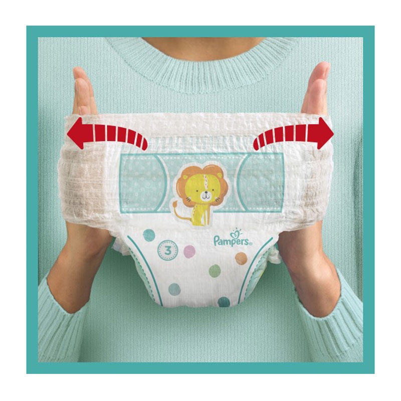Όλα αυτά χάρη στην περιμετρική εφαρμογή τους 360° και, (1) την ελαστική μέση που προσαρμόζεται στην κοιλίτσα του μωρού σας, (2) τον υπεραπορροφητικό πυρήνα που απορροφά την υγρασία στη στιγμή και, (3) τα διπλά προστατευτικά πλαϊνά γύρω από τα ποδαράκια για να αποφεύγεται κάθε διαρροή. Pampers Pants: για εύκολη αλλαγή κατά τη διάρκεια της ημέρας και προστασία από τις διαρροές κατά τη διάρκεια της νύχτας