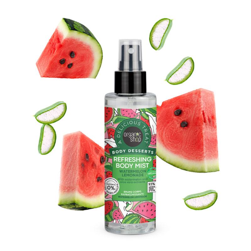 Αναζωογονήστε τις αισθήσεις σας με αυτό το δροσιστικό body mist με εκχυλίσματα καρπουζιού & αλόης βέρα! Το εκχύλισμα καρπουζιού βοηθά στην καταπράυνση και ηρεμία του δέρματος και είναι ιδανικό για τις ζεστές καλοκαιρινές ημέρες.Το εκχύλισμα αλόης βέρα, προσφέρει βαθιά ενυδάτωση, αφήνοντας το δέρμα σας ελαστικό και λαμπερό.