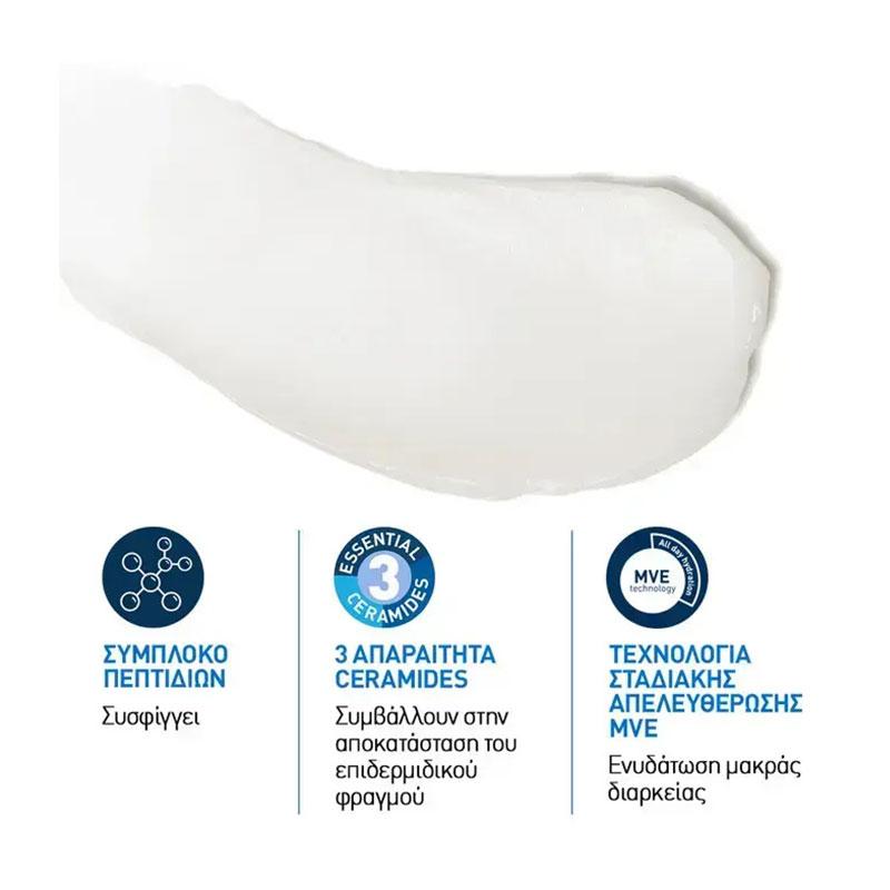 - Xάρη στην τεχνολογία MVE, τα συστατικά ενσωματώνονται στη σύνθεση σε ενθυλάκωση, κάτι που εξασφαλίζει την αποτελεσματική διείσδυσή τους στο δέρμα και τη σταδιακή απελευθέρωσή τους, σε βάθος χρόνου.