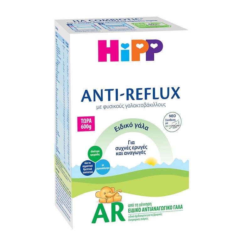 Το ειδικό αντιαναγωγικό γάλα HiPP AR βοηθά στις περιπτώσεις συχνών ερυγών και αναγωγών. Με αυτόν τον τρόπο μειώνεται η παλινδρόμηση της τροφής στον οισοφάγο ( Reflux) και η συνακόλουθη ερυγή και αναγωγή.