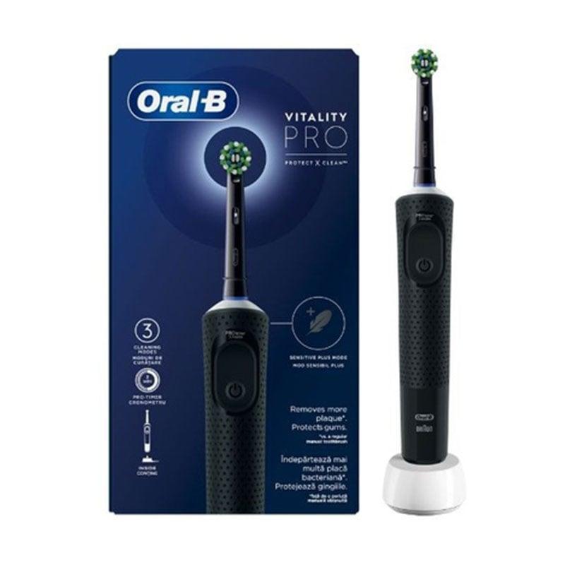 Η επαναφορτιζόμενη ηλεκτρική οδοντόβουρτσα Oral-B Vitality Pro προσφέρει κλινικά αποδεδειγμένο ανώτερο καθαρισμό σε σχέση με μια απλή χειροκίνητη οδοντόβουρτσα.