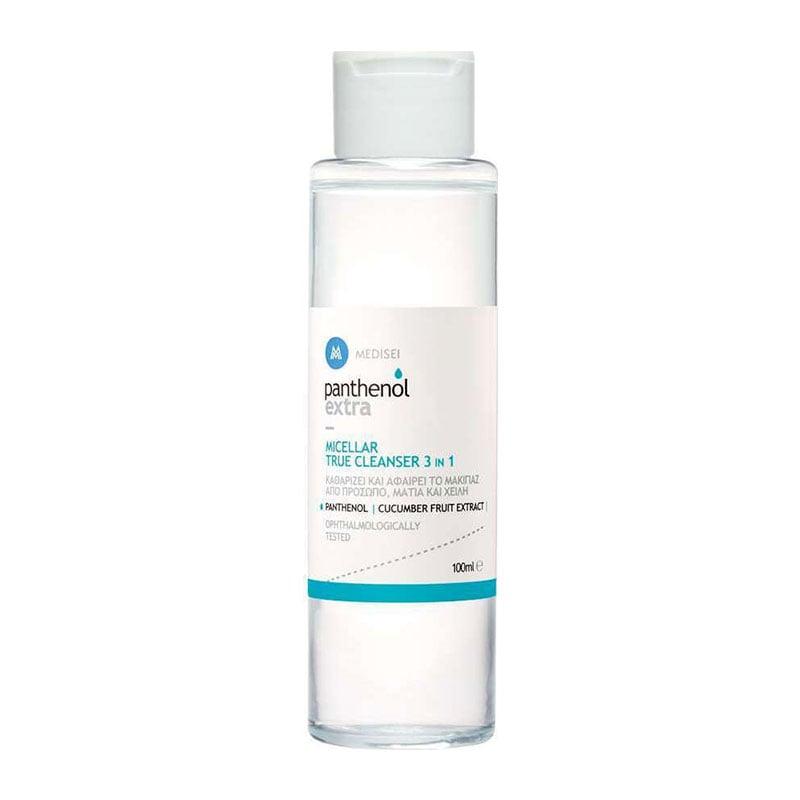 Το Panthenol Extra Micellar True Cleanser 3in1 με Πανθενόλη και Εκχύλισμα Αγγουριού, αφαιρεί εύκολα και αποτελεσματικά το μακιγιάζ από το πρόσωπο, τα μάτια και τα χείλη. Απομακρύνει τους ρύπους και τη λιπαρότητα αφήνοντας την επιδερμίδα απαλή, καθαρή και ενυδατωμένη. Με ήπια σύνθεση και άριστη ανεκτικότητα στο δέρμα είναι κατάλληλο ακόμη και για τις πιο ευαίσθητες επιδερμίδες.