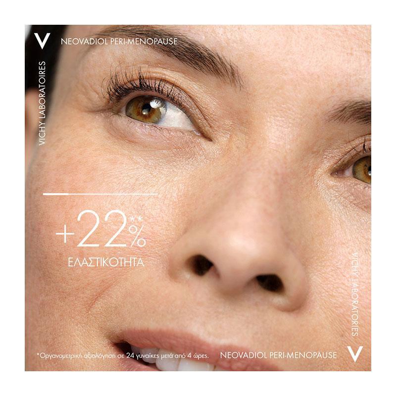 Αντισταθμίζει τα ορατά σημάδια της περιεμμηνόπαυσης στην επιδερμίδα με στοχευμένη δράση ενάντια στην απώλεια πυκνότητας και στην αλλοίωση του περιγράμματος προσώπου.