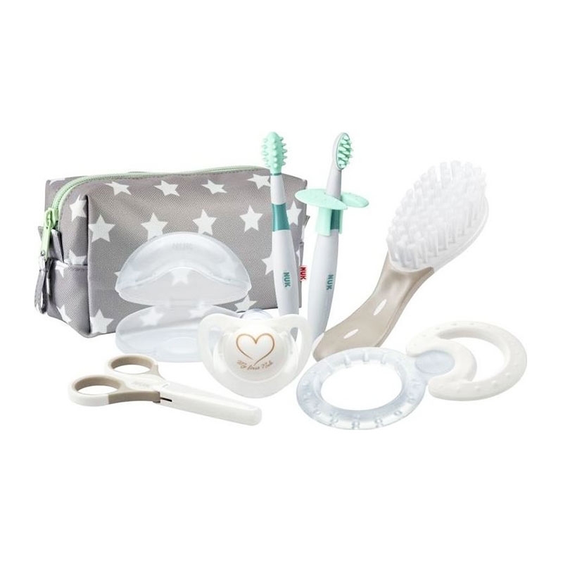 NUK Σετ «Welcome», ο ιδανικός εξοπλισμός για νεογέννητα, επτά προϊόντα της NUK σε όμορφο τσαντάκι με ταιριαστά χρώματα.